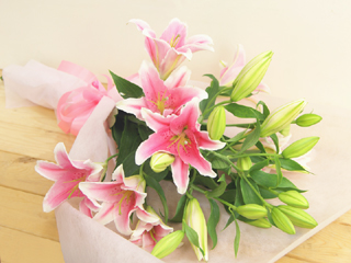 花キューピット加盟店の花屋 花の南福花園 > アレンジメント > ピンクのユリ[vs-pink-lillie]の詳細