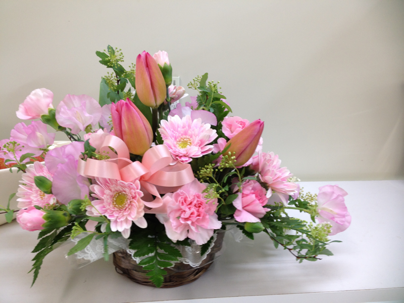 花キューピット加盟店の花屋 花の南福花園 > アレンジメント > ピンクチューリップのアレンジメント【南福花園オリジナル】[ar02-0702]の詳細