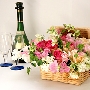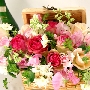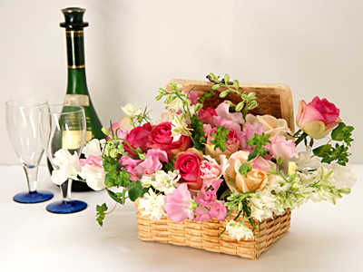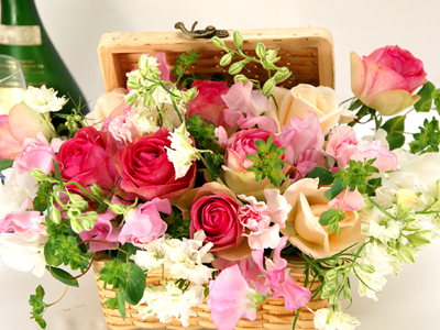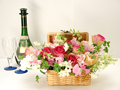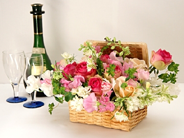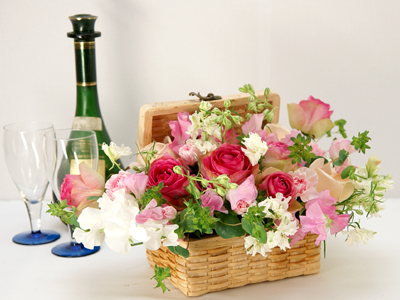 ランチボックスみたいなかごがかわいらしいピンク系フラワーアレンジメント 送料無料![mt-304]の詳細