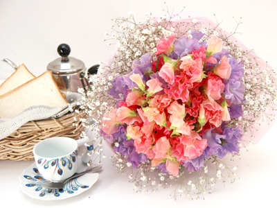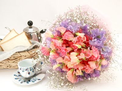 花キューピット加盟店の花屋 花の南福花園 > 花束 > 2色のスイトピーがガーリーな花束 送料無料![ht-307]の詳細