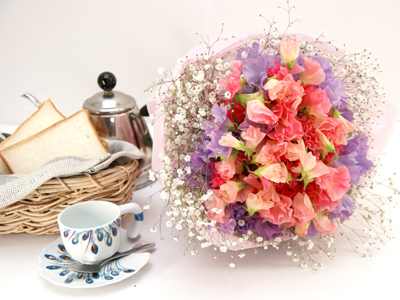 2色のスイトピーがガーリーな花束 送料無料![ht-307]の詳細