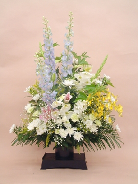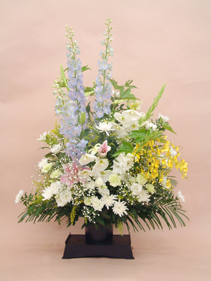 説明:リーズナブルな価格のコンパクトな据え置き式お供え花。
