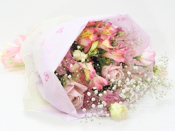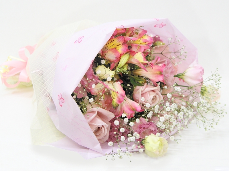 花キューピット加盟店の花屋 花の南福花園 > 花束 > ピンクのショートブーケ(花束)【花の南福花園オリジナル】[ht-415]の詳細